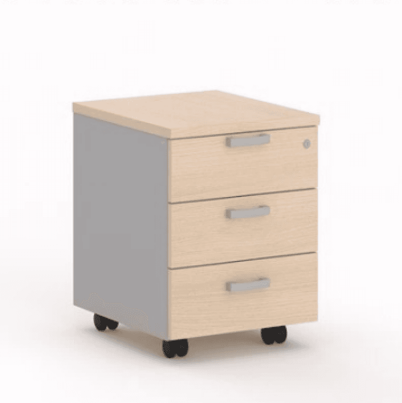 Està equipat amb tres calaixos, que ofereixen espai d'emmagatzematge per a documents, arxius, subministraments d'oficina o altres objectes. Aquest tipus de buc ofereix un espai d'emmagatzematge segur i tancat mitjançant un calaix amb clau per a emmagatzemar documents confidencials, arxius importants o qualsevol altre objecte valuós que requereixi protecció addicional. La clau permet tancar i assegurar el calaix, brindant privacitat i control d'accés.