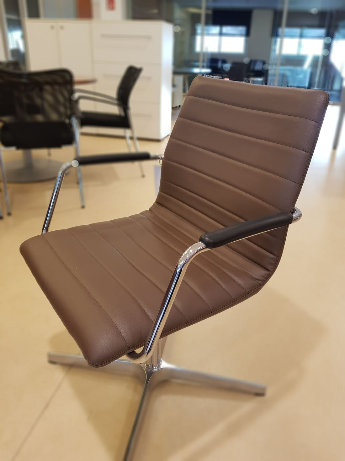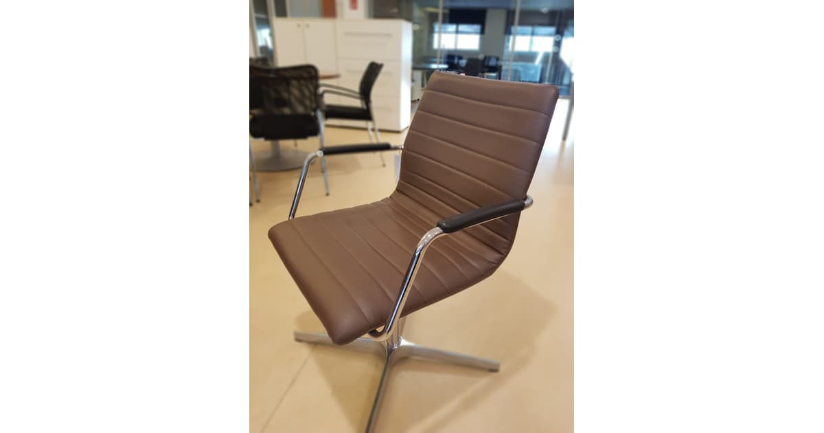 Cadira Mod. DAHLIA d'Offisit, fixe amb base en aspa d'alumini polit i topes, basculant, braços, entapissada en POLIPELL marró.
