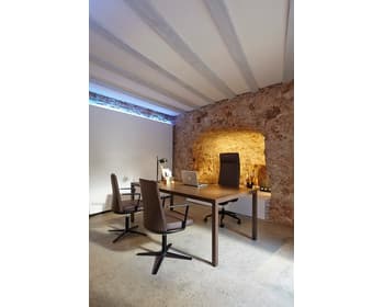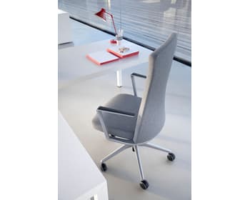 Respatller injectat d'escuma de PU flexible de 75-80kg / m3 de densitat sobre estructura metàl·lica interna de tub d'acer de Ø 16 x 1,5 mm de gruix. respatller alt amb capçal integrat, amb entapissat enfundat en diferents acabats. Sistema Syncro autopesante avançat que permet una millor adaptació de l'usuari. Seient amb tecnologia ACS (air comfort system). carcassa de polipropilè (P.P) amb fibra de vidre (PP + 20% F.V.) injectat en acabat negre, recoberta amb escuma injectada i entapissada en teixit de fàcil neteja. regulable en altura mitjançant pistó de gas. Regulació multiposicional de la profunditat del seient amb recorregut de 6 cm i