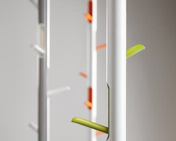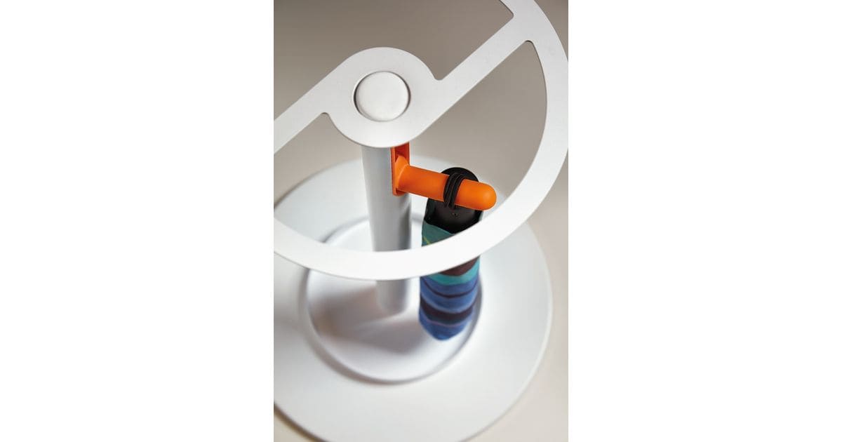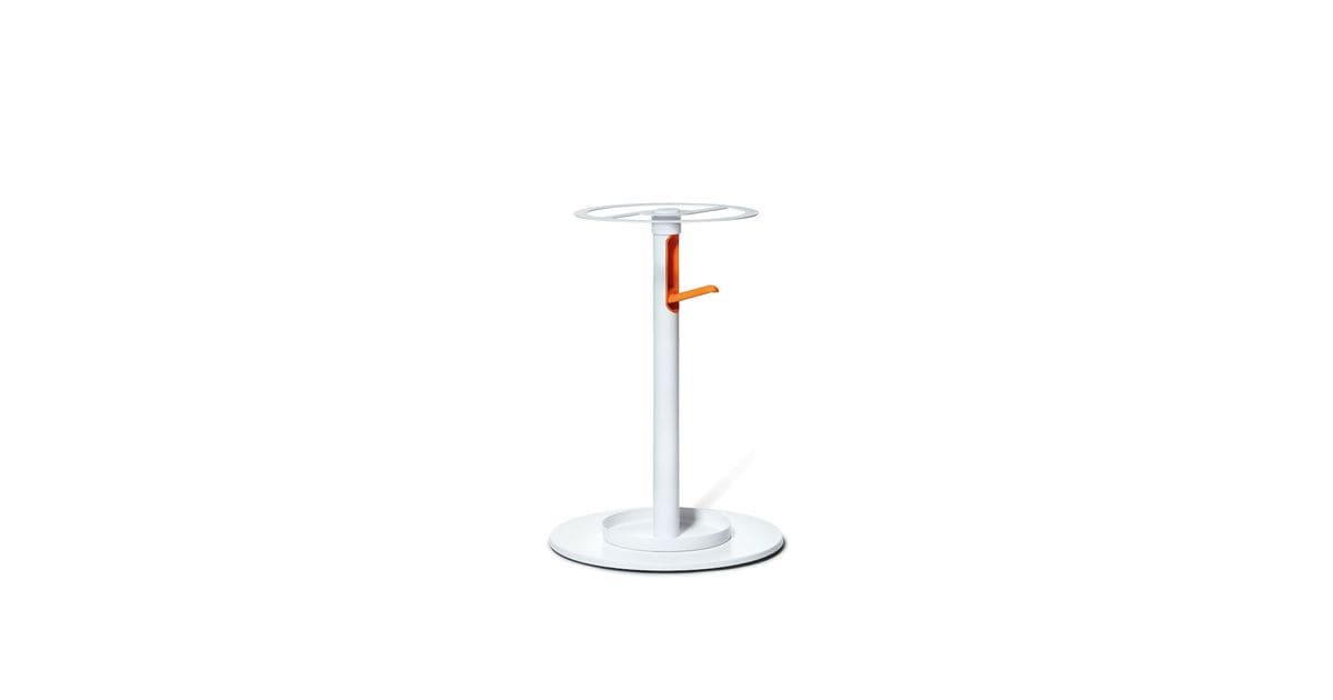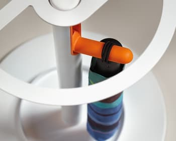 Un penjador pensat per a espais de treball exigents gràcies a sis penjadors retràctils de gran resistència. Amb una estructura i base metàl·lica blanca, combinades amb penjadors que
