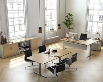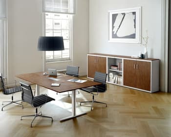 Nova sèrie de taules per a l'oficina basada en la reinterpretació d'un clàssic del disseny a l'oficina, la pota T, o el que seria més correcte, la pota T invertida.