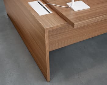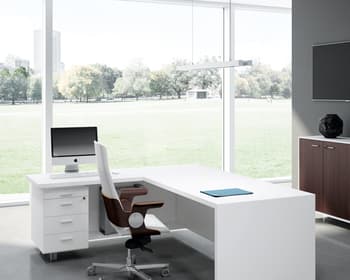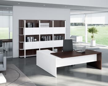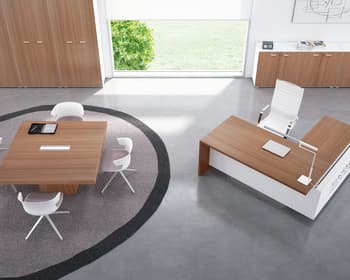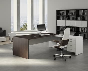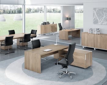 T45, un pont entre clàssic i modern. Gràcies a la puresa extrema de les seves línies i la seva forta personalitat, la nova col·lecció T45 confereix als espais d'oficina una agradable combinació entre estil, les tendències estètiques noves i la més clàssiques, la solidesa formal i la funcionalitat. Gràcies al seu disseny minimal i lineal, T45 es distingeix per la seva unió a 45 ° entre sobre i estructura i per les combinacions d'acabats melamínics, ampliant la seva gamma amb el color Olmo. No solament taules individuals i taules amb ales, T45 ofereix també solucions amb moble de servei o box multiusos. La col • leció es completa amb les seves taules de juntes amb estructures tant en melamina com a metall.