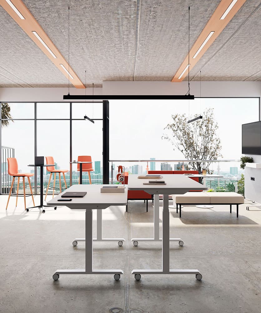 Mobility, la taula elevable capaç de cuidar la teva salut mentre treballes. Treballar de peu durant algunes hores de la jornada laboral no només repercuteix de forma positiva a la salut i el benestar, sinó que a més millora la capacitat de concentració i productivitat. Mobility és la solució per a l'espai de treball que garanteix lèxit. Donant suport a múltiples cultures i estils de treball.
