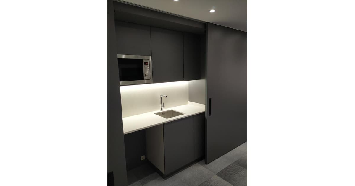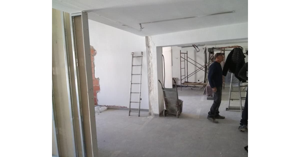 Enderroc de les antigues intal.lacions, seguit de l’execució del nou paviment, nous tancaments, mampares, fusteria, nova il.luminació, climatització, retolació, pintura i nou mobiliari.
