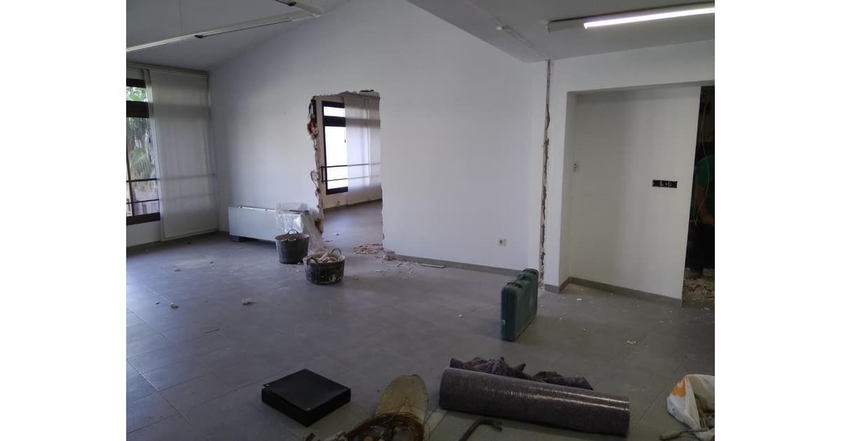 Derribo de las antiguas instalaciones, seguido de la ejecución del nuevo pavimento, nuevos cierres, mamparas, carpintería, nueva iluminación, climatización, rotulación, pintura y nuevo mobiliario.